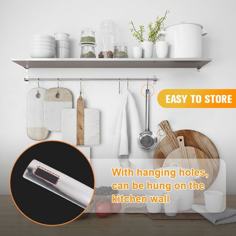 El extremo del mango está diseñado con un agujero para colgar, que se puede colgar en la pared de la cocina, que es fácil de organizar y no ocupa espacio adicional.