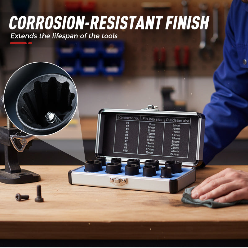 APLICACIÓN VERSÁTIL: con una gama de tamaños comunes, este juego de extractores es la solución perfecta para mecánicos de automóviles, trabajadores de la construcción y entusiastas del bricolaje, ya que se ocupan de sujetadores dañados en maquinaria, vehículos y accesorios del hogar.