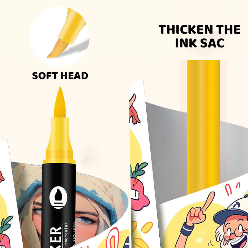 MEZCLA DINÁMICA DE COLORES PARA UN EFECTO ÚNICO - Descubre la magia de la mezcla de dos colores con el innovador kit de rotuladores de acuarela de doble punta y dos colores. Cada rotulador combina dos colores complementarios en uno, lo que le permite lograr impresionantes efectos de degradado y transiciones de color sin fisuras con facilidad.