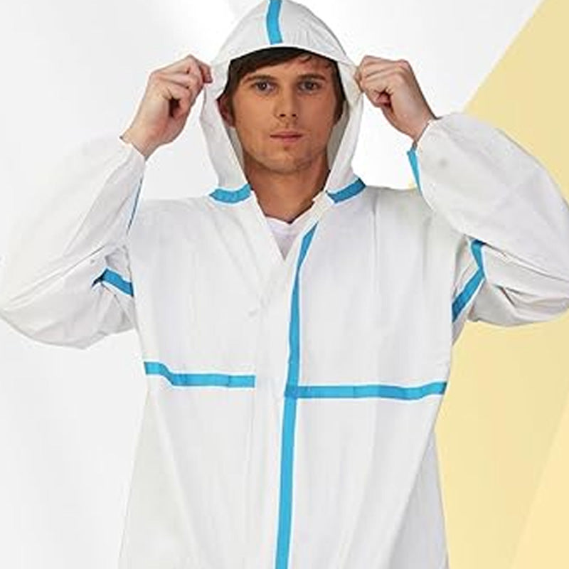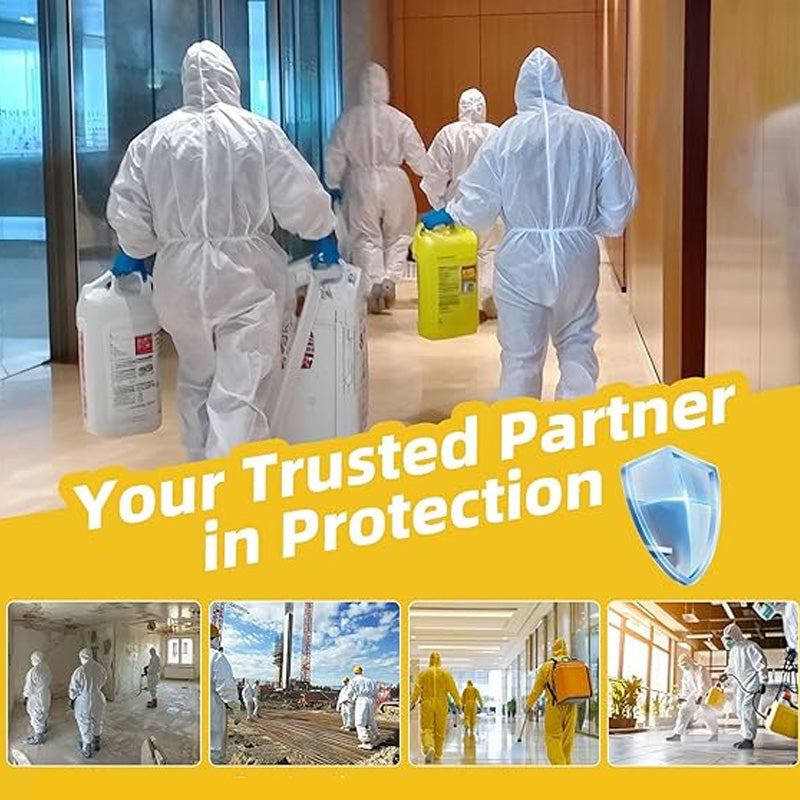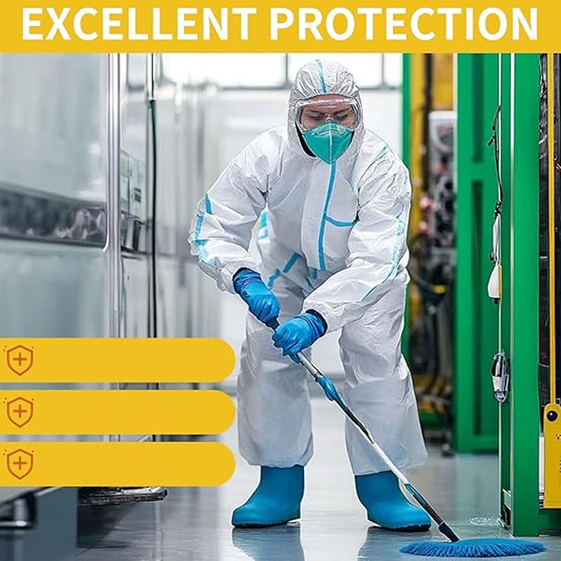 PROTECCIÓN TOTAL DEL CUERPO– Proporciona una cobertura integral desde la cabeza hasta los pies, incluyendo una capucha adjunta, protegiendo contra polvo, suciedad, líquidos y partículas. Ideal para entornos médicos, industriales o de limpieza donde la máxima seguridad es esencial.