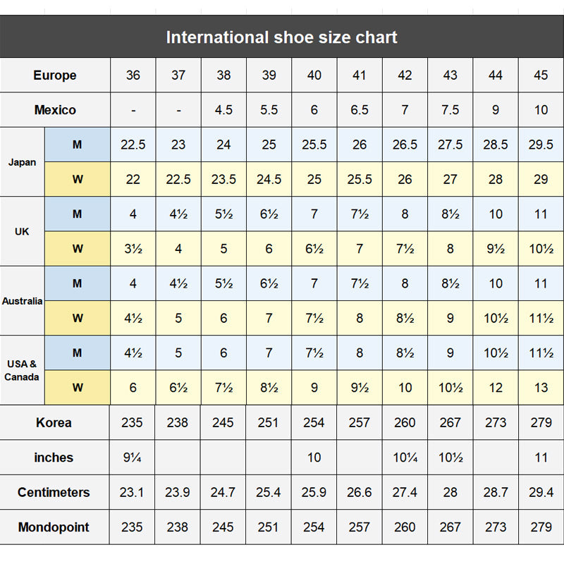 Talla: 36, 37, 38, 39, 40, 41, 42, 43, 44, 45, 46
