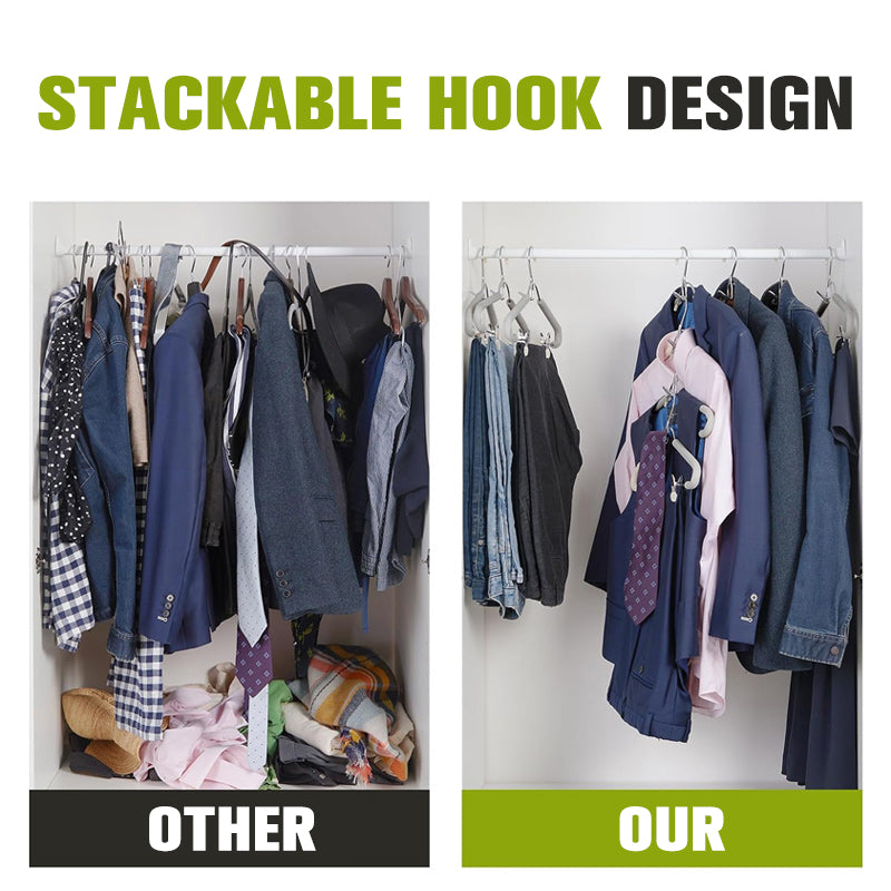 DISEÑO DE GANCHO APILABLE – El gancho innovador permite apilar múltiples percheros, maximizando el espacio del armario mientras mantiene la ropa organizada y fácilmente accesible. Perfecto para espacios pequeños.