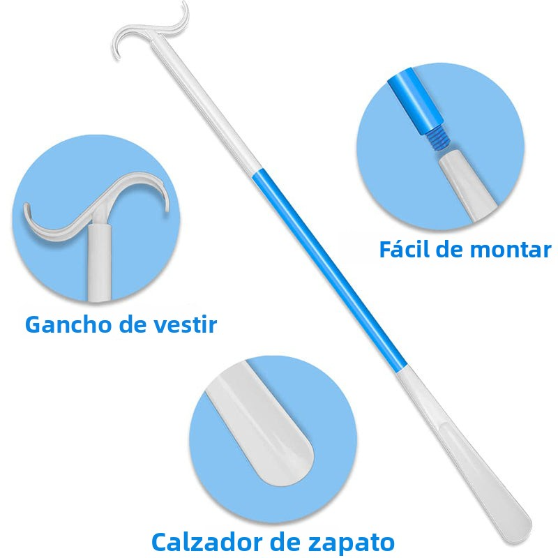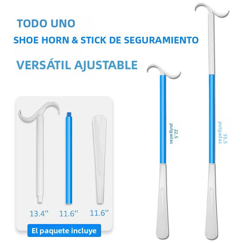 DISEÑO MULTIFUNCIONAL 3 EN 1: Combina una cornetilla para zapatos, un descalzador de calcetines y un palo para vestirse en una única herramienta práctica, facilitando el vestido diario de manera más fácil, segura y menos exigente físicamente.