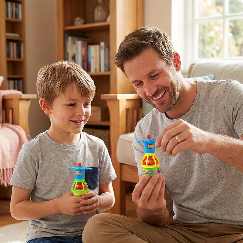 GIRO DURADERO - Diseñado para una rotación prolongada con un solo lanzamiento. Esto proporciona entretenimiento prolongado y mantiene el interés del niño por más tiempo que los trompos estándar, ofreciendo una diversión más satisfactoria y continua.