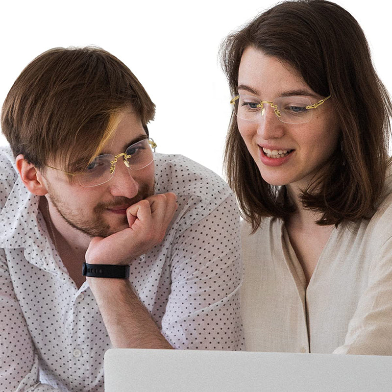 Presentamos nuestras gafas de presbicia sin montura anti luz azul, con un diseño sin montura que le mantiene con un aspecto profesional y a la moda mientras trabaja o lee. Con una elegancia vintage y un diseño vanguardista, estas gafas se adaptan a cualquier forma facial. Proteja sus ojos de la luz azul dañina sin perder el estilo.