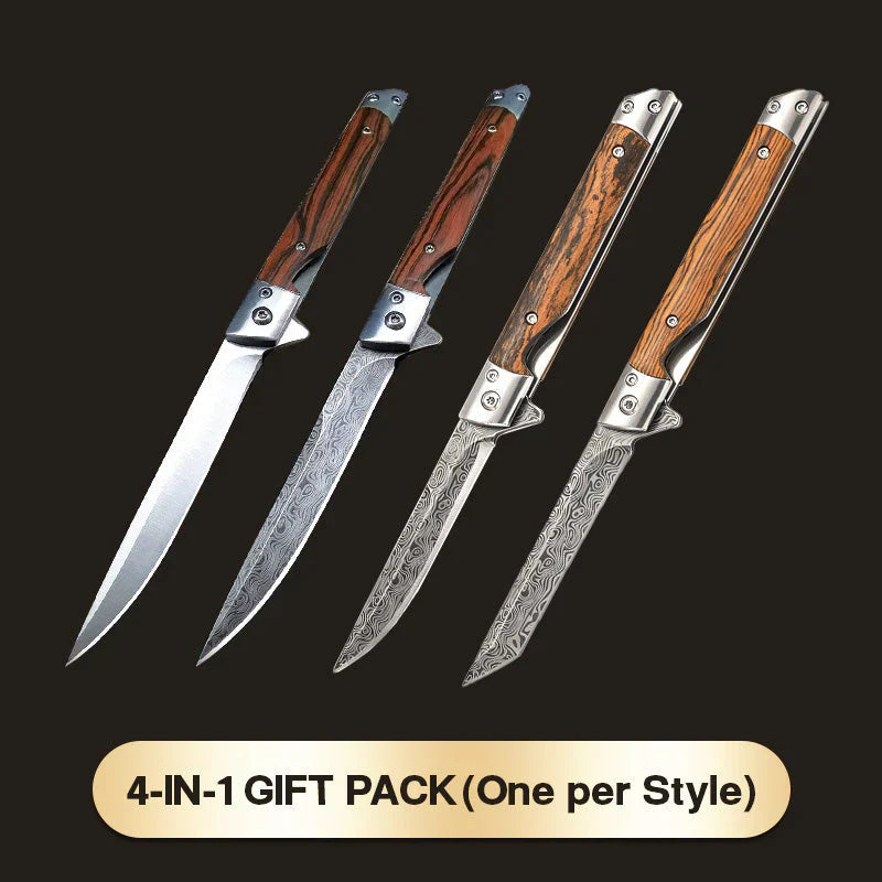 Cuchillo plegable con mango de madera para trabajo, senderismo y camping