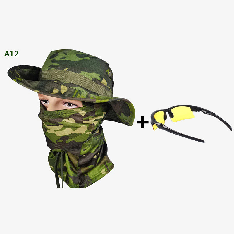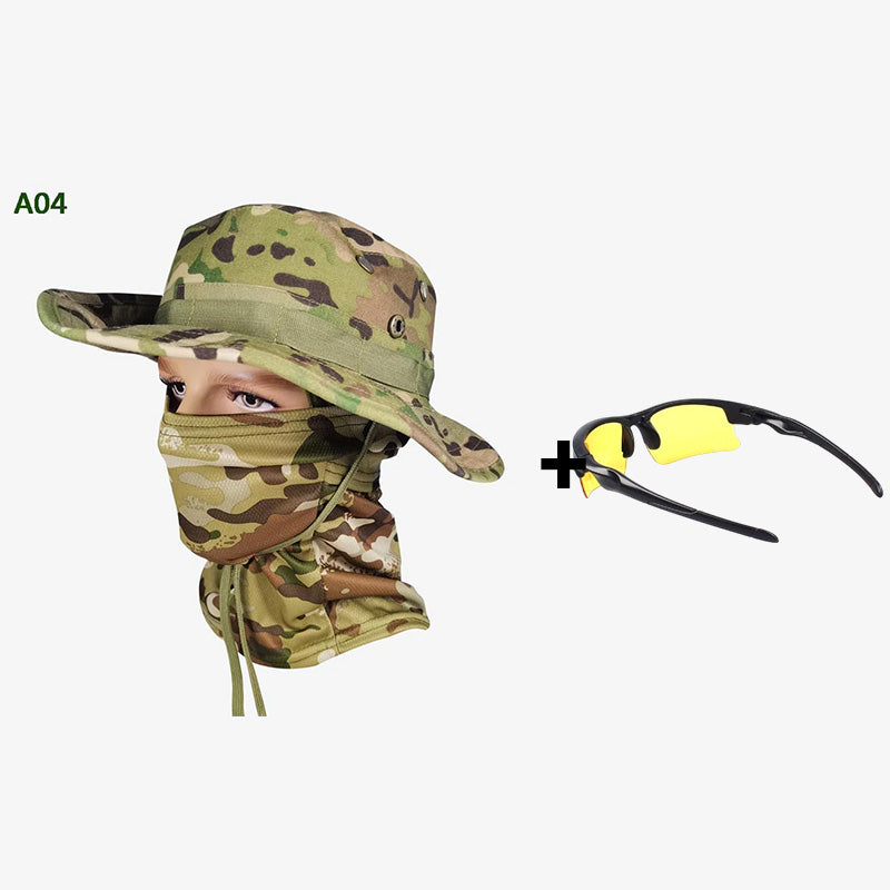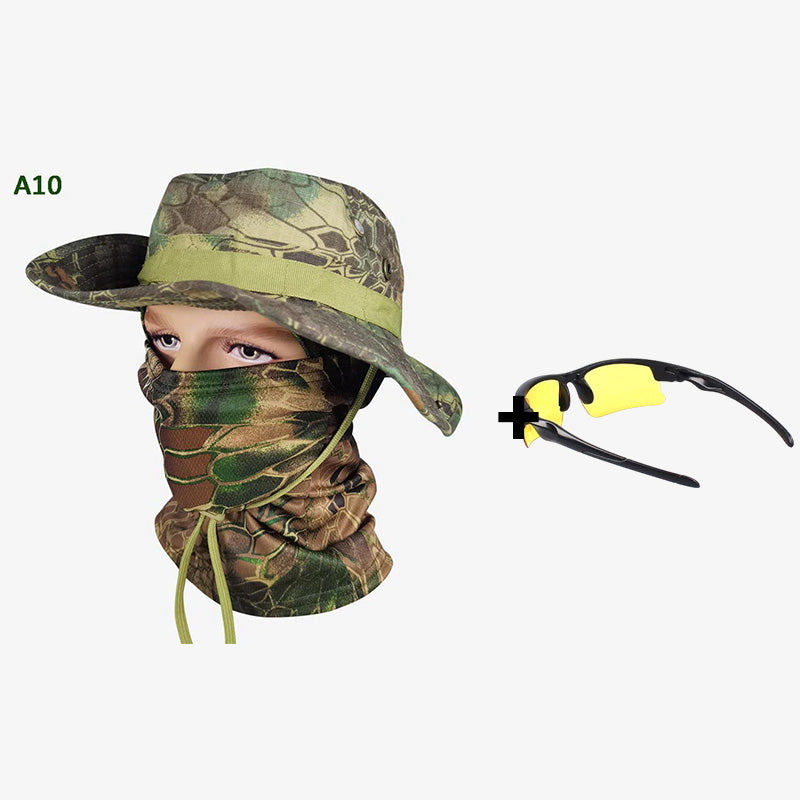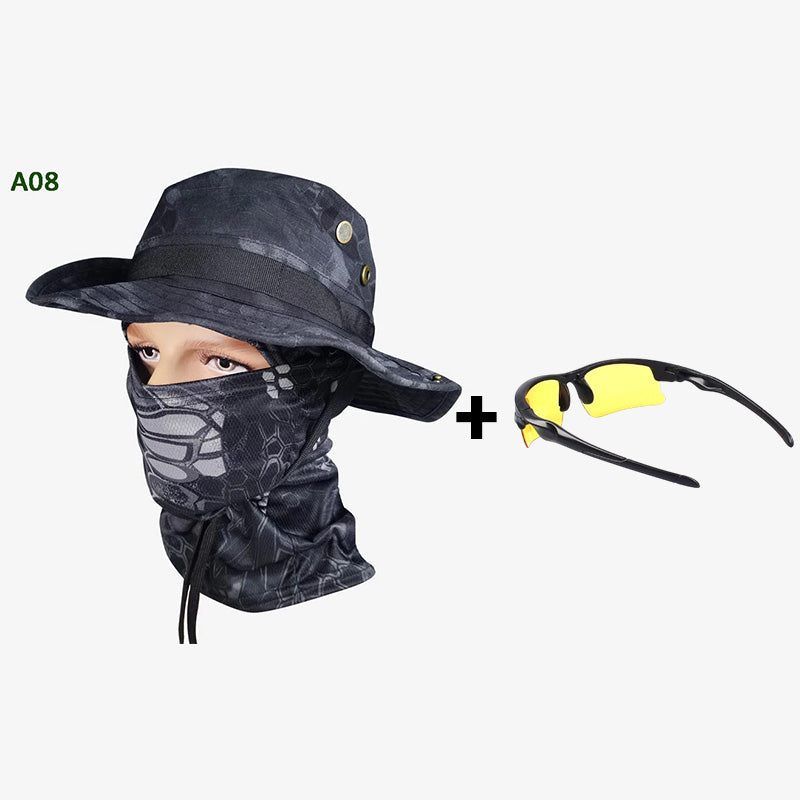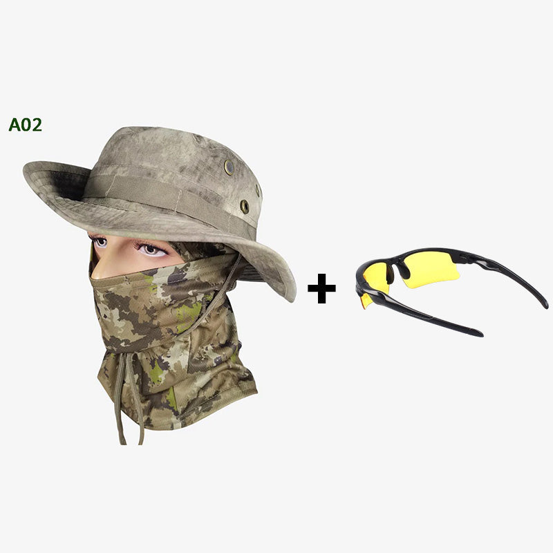 - El paquete incluye: sombrero de pesca de camuflaje 1 * 2 en 1 y envoltura de cuello de máscara