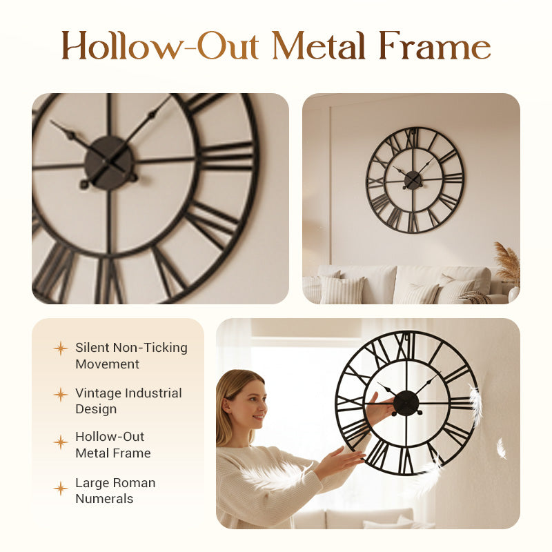 VINTAGE ROMAN NUMERALS - Add a touch of timeless elegance to your decor. The classic Roman numeral design offers easy readability from a distance and serves as a sophisticated focal point in any room.