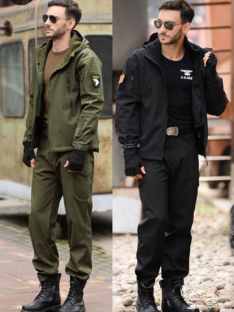 Conjunto de chaqueta y pantalones softshell táctico • Impermeable • Antiviento • Aislante • Ideal para uso invernal y de terreno
